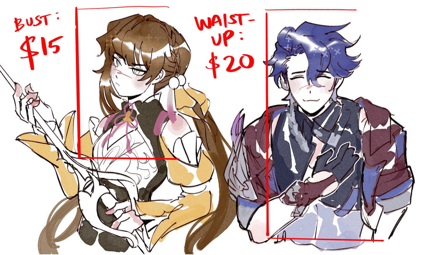 + Refunds will be given in full amount if I hadn’t already started on anything beyond a rough sketch